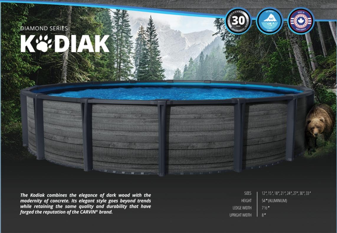 Carvin has released their collection of Above Ground Pools and you can find it at Crown Pools. Choose between the Kodiak, Redwood, Madera, Cape Cod, Woodstock or Newtown in a wide variety of sizes.
