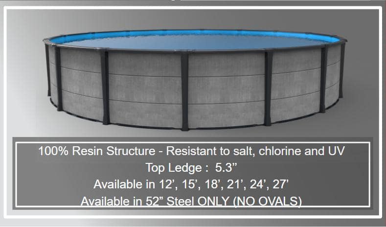 These Carvin pools are easy to install, with elevated bottom rails and base plates for a superior sturdiness and a deeper insertion of wall support. The structure of the pool is 100% injected resin, which makes it ideal for all water sanitation systems and also UV resistant.